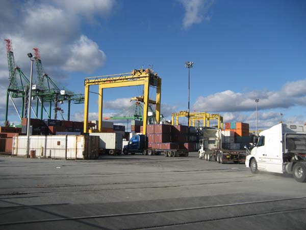 Containern beladenen LKW ans Kai. Heute ist der Andrang genau so